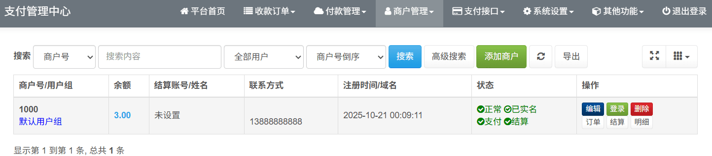 7、添加支付通道和商户