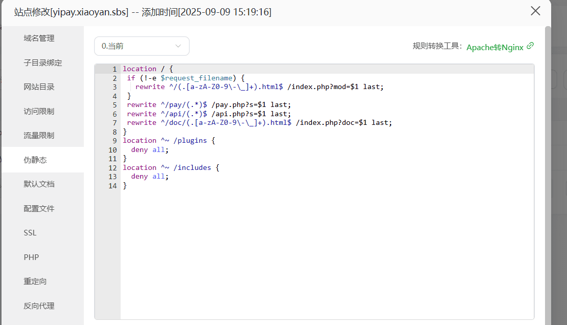 修改伪静态: