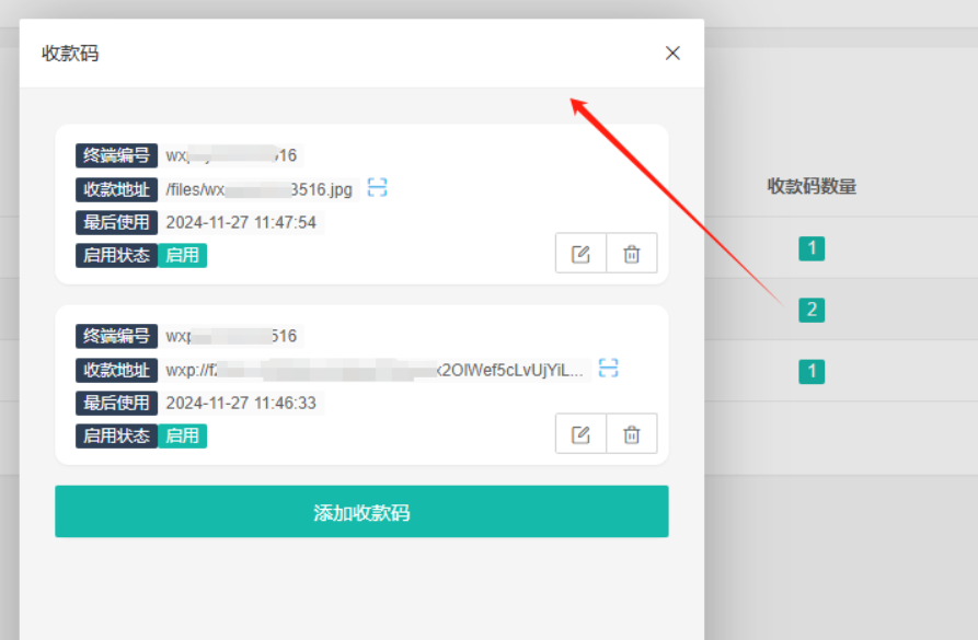 微信支付和支付宝的终端编号是自动生成的,不可手动填写,分别对应当前账号的不同收款通道,支持个人码和赞赏码