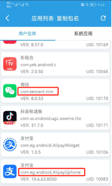 用户中心后台里的配置APP包名不一定与手机应用里的包名一致,需要查看一下,如果有区别,请修改成实际本机显示的APP包名,下面有图片演示操作