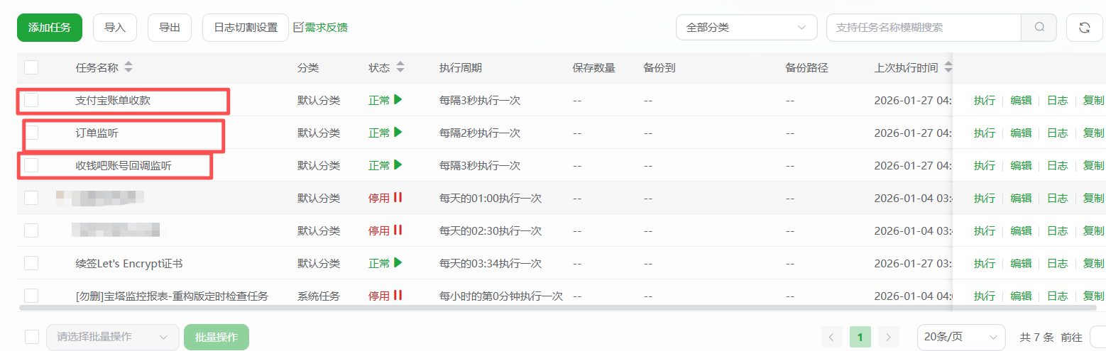 订单监听:每个站点只需要设置一次即可,在用户中心的聚合码定时任务栏目可以看到具体设置