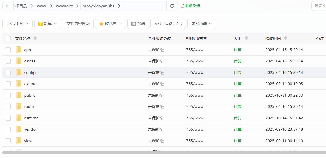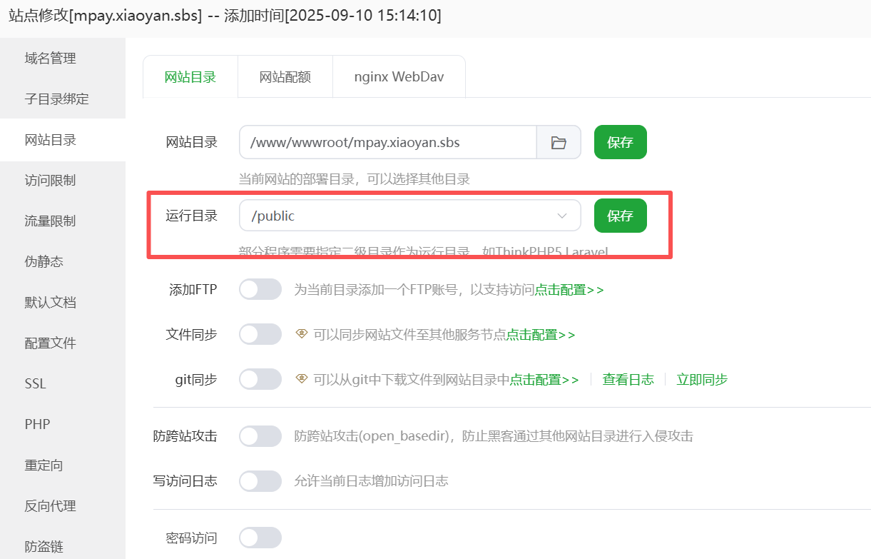 注意,压缩包文件打包的是一个名为mpay的文件夹,需要将代码文件夹里面的所有文件复制出来,放到创建的网站根目录下,运行目录&仿静态 配置