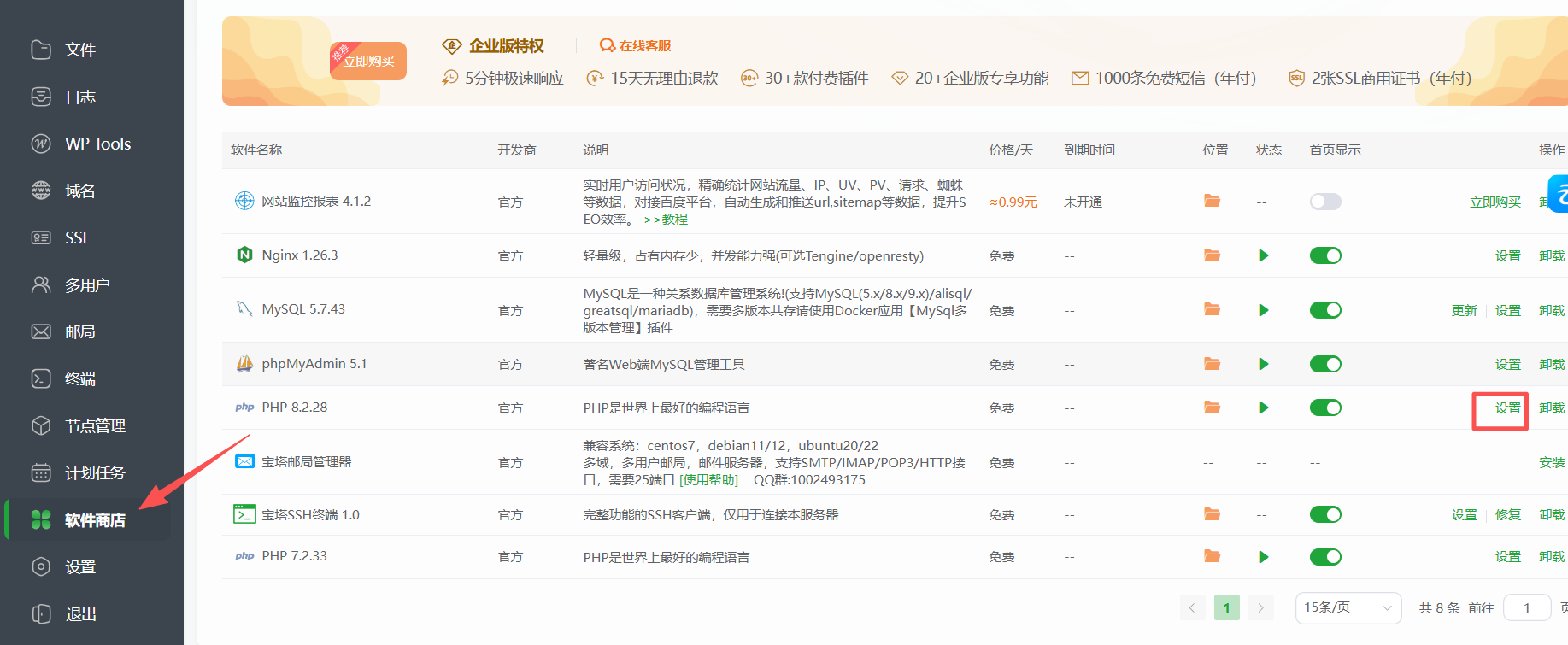 在网站列表页面,点击创建的网站的根目录,进入文件管理。