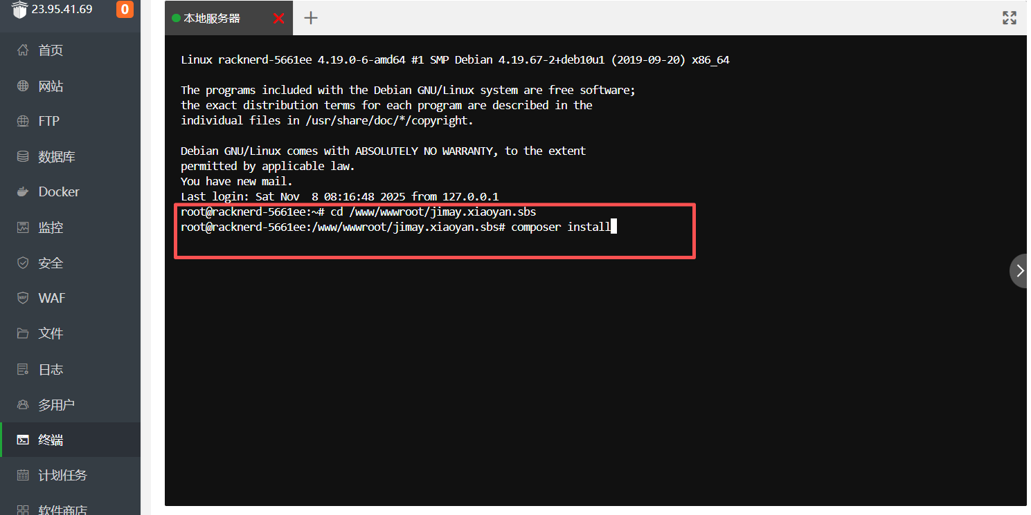cd /www/wwwroot/你的域名 #进入到你的项目目录